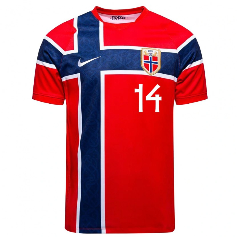 Danxen Pánské Norsko William Kaldråstøyl Valenza #14 Červená Námořnická Bílá Domů Hráčské Dresy 26-28 Dres