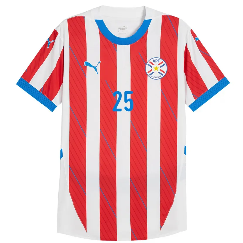 Danxen Pánské Paraguay Gustavo Velázquez #25 Bílá Červená Domů Hráčské Dresy 24-26 Dres